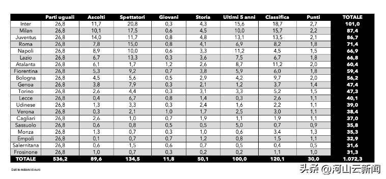 上赛季意甲冠军国际米兰,电视转播收入为 1.01 亿欧元,是意甲唯一上亿欧元的球队。在梅阿查球场,国米的球迷们为球队的每一场胜利欢呼,但在转播收入方面,和英超冠军曼城比起来,差距可不是一星半点。AC 米兰的转播收入为 8740 万欧元,尤文图斯为 8670 万欧元。这两支传统豪门在转播收入上也没能突破一亿大关,和英超豪门比起来,差距太明显了。而意甲最少的 3 支球队,恩波利仅获得 3290 万欧元,萨莱尼塔纳为 3160 万欧元,弗罗西诺内只有 3130 万欧元。这些球队在转播收入上的微薄所得,严重限制了他们在转会市场的投入和球队的发展。你想啊,没钱怎么买好球员,怎么提升球队实力呢?